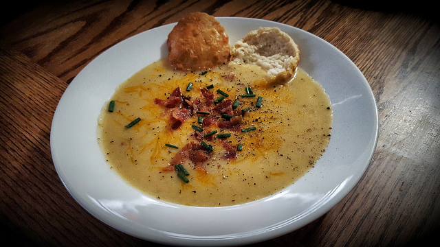 Although the exact lineup of soups changes on a daily basis, you can always expect creative concoctions. For example, you might see the sweet potato veggie on display, a creamy blend of sweet potato and veggies tinged with subtle sweetness thanks to brown sugar, cinnamon, and nutmeg. The beef barley soup and tomato-basil bisque offer savory options that are on the lighter side, whereas the Texas beef chili and Maryland crab cake soups bring some extra sustenance. Sandwiches and salads are also available to pair with your chosen soup or eat solo.